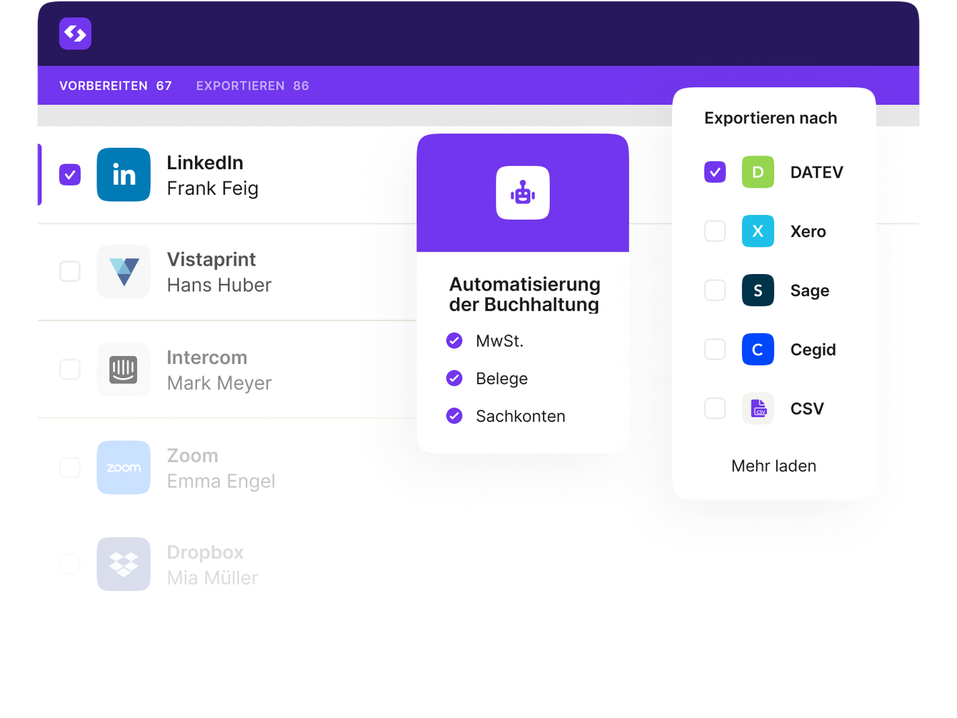 Setzen Sie auf KI im Finanzwesen und somit auf Automatisierungstools, die genau dort ansetzen, wo sie den größten Mehrwert bringen. Wir wissen, dass es wichtig ist, die Kontrolle zu behalten und wertvolle Zeit zu sparen – und haben seit 2017 bereits über 5.000 Kund:innen dabei geholfen, mit unserer Finanz-KI mehr zu erreichen.