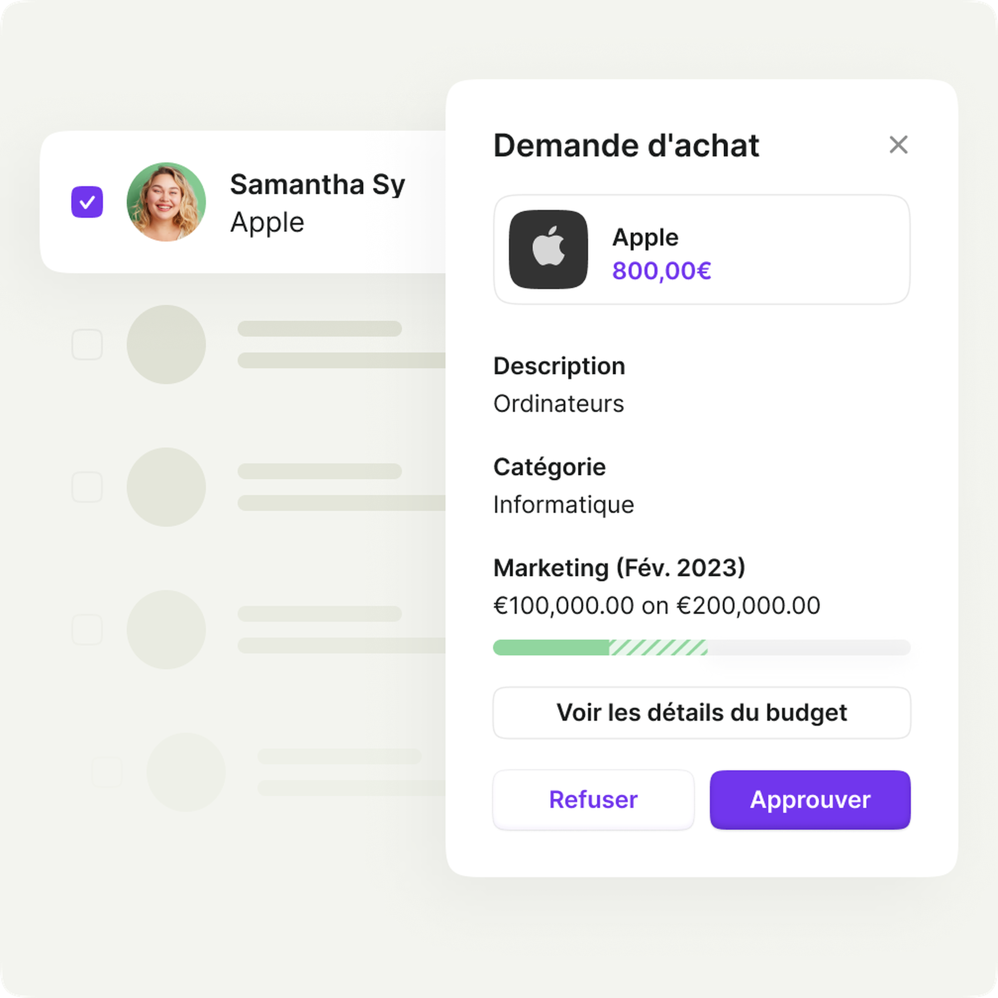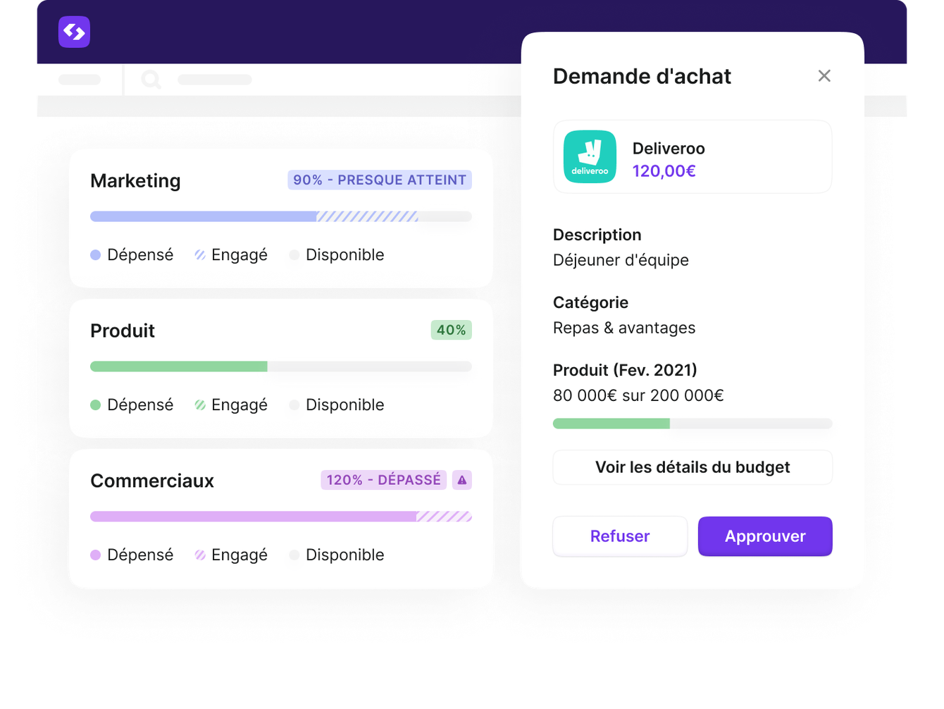 Vos budgets sont intégrés à votre processus de dépenses pour un contrôle budgétaire automatisé et sans effort.