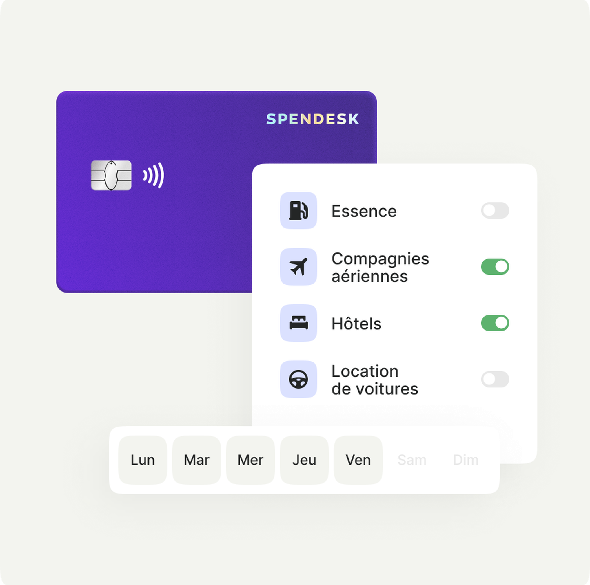 Paramétrez les cartes physiques Spendesk en fonction des besoins des salariés. Ce qui permet qu’elles soient utilisées sur des plages journalières, à des horaires définis et pour des types de dépenses spécifiques.