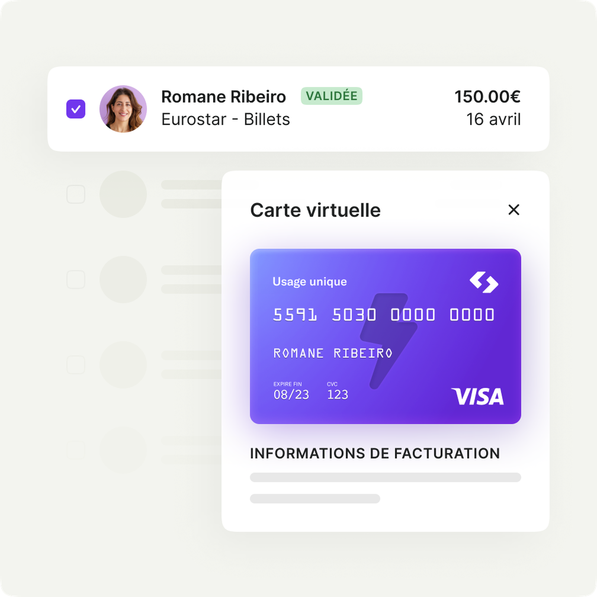 Générez des cartes de paiement virtuelles à usage unique chargées du montant demandé et autorisé par la politique de dépenses de l'entreprise. Limitez ainsi le risque de fraude interne & externe.